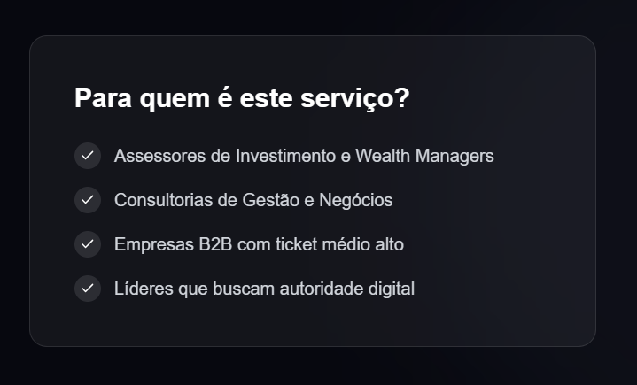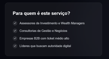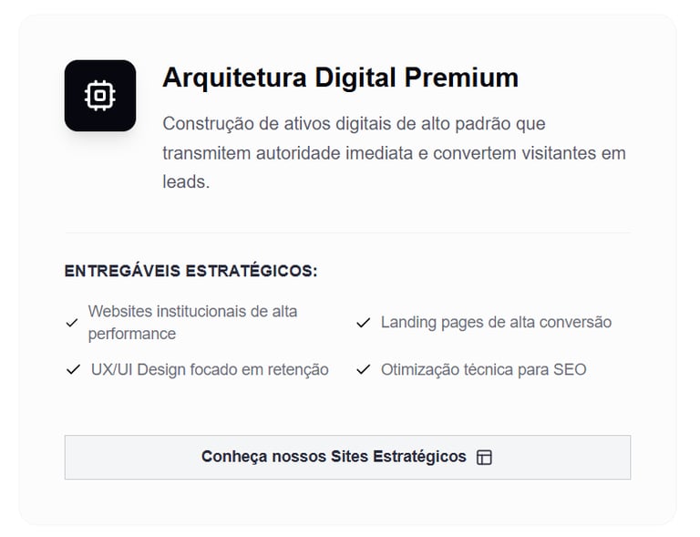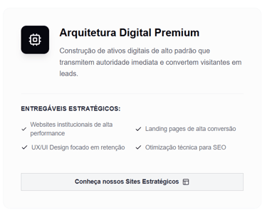 Arquitetura digital estratégica para empresas do mercado financeiro e serviços consultivos de alto valor.