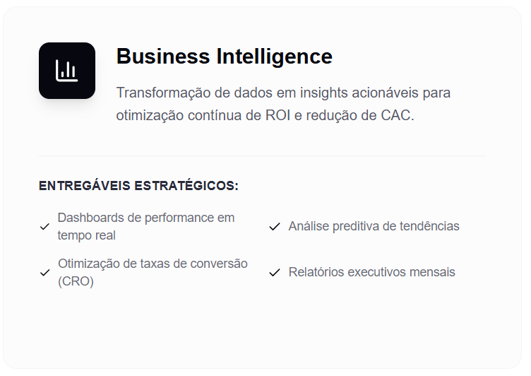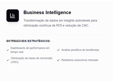 Nossos serviços são desenhados para negócios que demandam resultados superiores. Entregamos sofisticação técnica e visão de negócios em cada projeto.