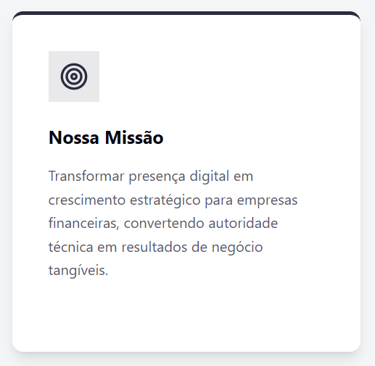 Ao longo de nossa trajetória, evoluímos de uma consultoria de branding para uma estrutura completa de arquitetura de crescimento. Entendemos que no mercado financeiro, confiança é a moeda mais valiosa, e nossa missão se tornou traduzir essa credibilidade para o ambiente digital.